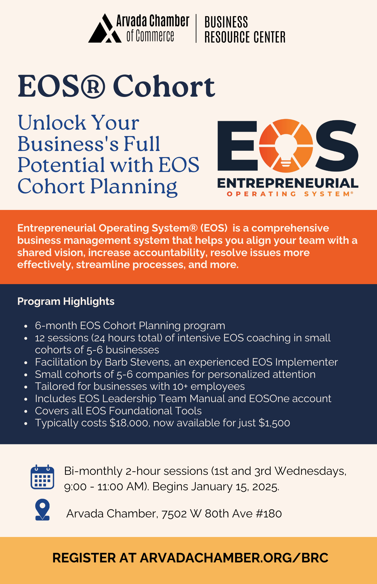 Are you ready to take your business to the next level? The Arvada Chamber of Commerce is excited to offer an exclusive opportunity for business owners to master the Entrepreneurial Operating System (EOS)® at a fraction of the usual cost.