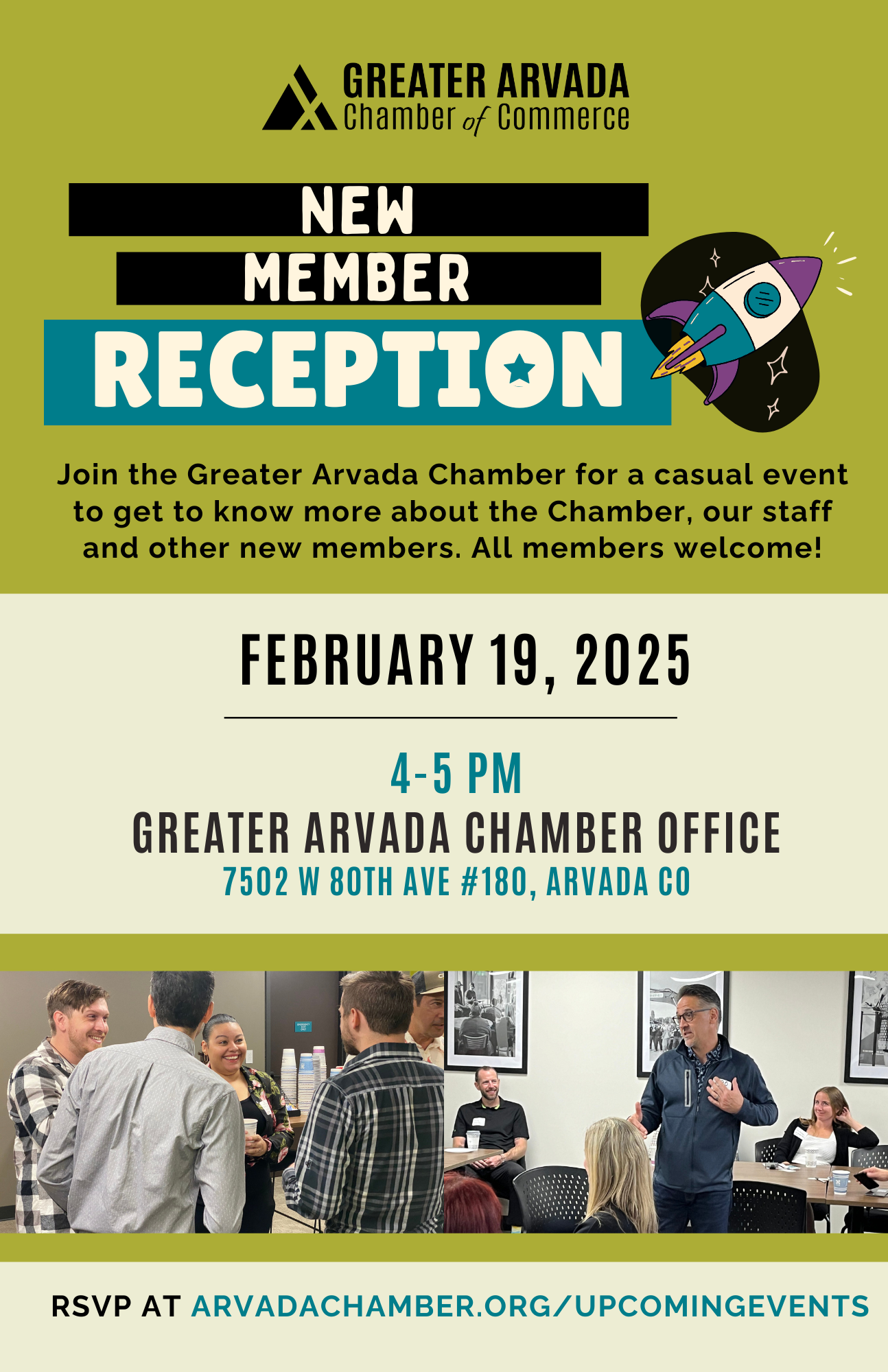 Join us for a casual event to get to know the Greater Arvada Chamber of Commerce, its staff and other new members. All members welcome!