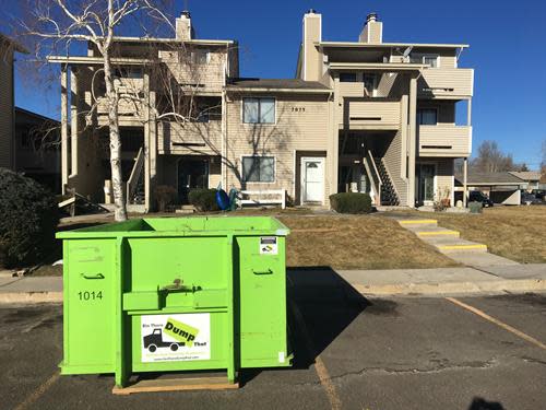 Mini bins are clean, attractive and comply with most homeowner association (HOA) rules. Bins are compact and can fit into driveways, alleys and tight spaces. Bins are easy to load from the rear, with double door access. Bins do not rest directly on your driveway and won't damage your driveway - ask us for details when you call! Bins are large enough to accommodate almost any residential clean up, move out, remodeling project or disaster restoration project. Using a bin saves you time, money and stress. When you order a 'Bin There Dump That' bin you will NOT get a traditional dumpster - you will get a Residential Friendly Dumpster!