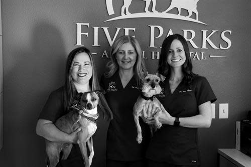 Five Parks Animal Hospital is a female-owned boutique small animal clinic for dogs and cats. Our mission is to provide superior quality medicine in a calm, comfortable and safe environment. Hand selected, cutting-edge equipment enables our team to provide the highest quality medicine. Five Parks is equipped with digital radiology, top of the line dental technology, an oxygen cage for respiratory emergencies and a new surgical suite furnished with extensive monitoring equipment to provide the safest anesthetic experience. At Five Parks client service comes first! Our practice is focused on an intimate, tailored and personalized experience for each patient. The goal of our practice is to form everlasting relationships with clientele and be active members within the community. Pricing is transparent, service comes with a smile and care is compassionate. We promise your experience at Five Parks will be mindful, heartfelt and genuine. The concept of Five Parks Animal Hospital developed from an ambitious vision; to change the paradigm of veterinary medicine and improve the client experience. To challenge the norm of more appointments in less time, higher patient load with less resources and longer hours with fewer breaks. We believe employment in the veterinary community is a privilege and should feel that way. Five Parks employs a highly qualified staff in a positive, supportive and inspiring workplace. Our staff members are energized and given every resource to help promote good mental health. This results in first-rate client and patient care.