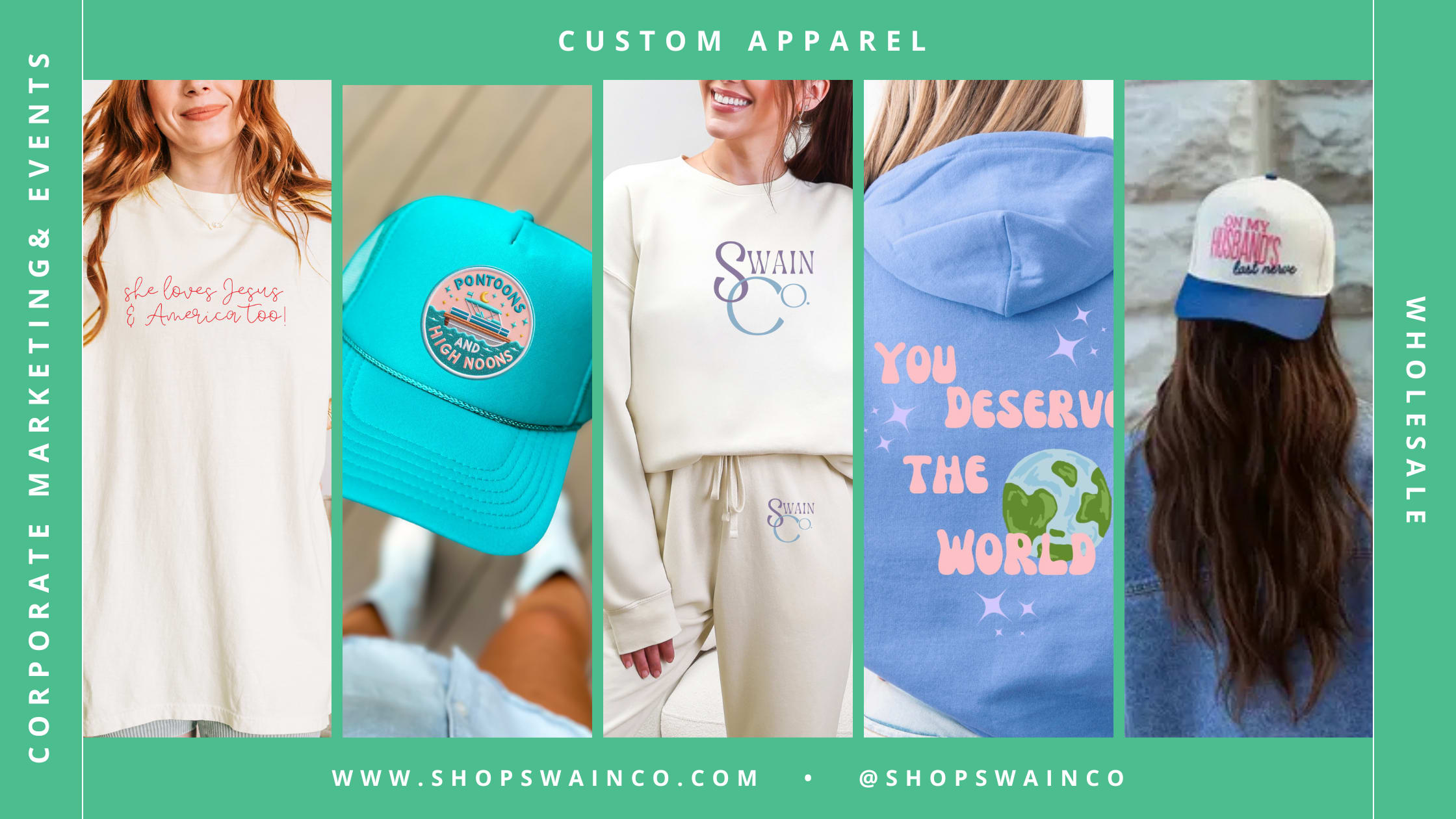 Swain Co. provides custom branded apparel, promotional products, and wholesale merchandise designed to help your business make an impact. We specialize in professional printing and embroidery, in the most trending styles, including hats, t-shirts, jackets, bags and more! We also offer wholesale products for businesses to resell including custom designed apparel and accessories. Need branded swag/printing services for business promotion? We can do that, too! Whether you're a small business, non-profit, school or someone just shopping for a festive tee, we deliver quality products, a fast turnaround time and a personalized experience.